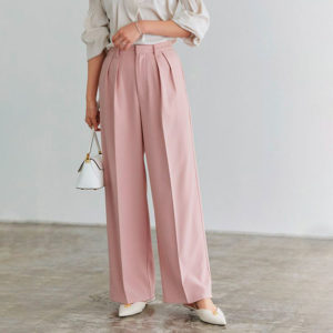 【Pierrot】センタープレスタックワイドパンツ(ベビーピンク)