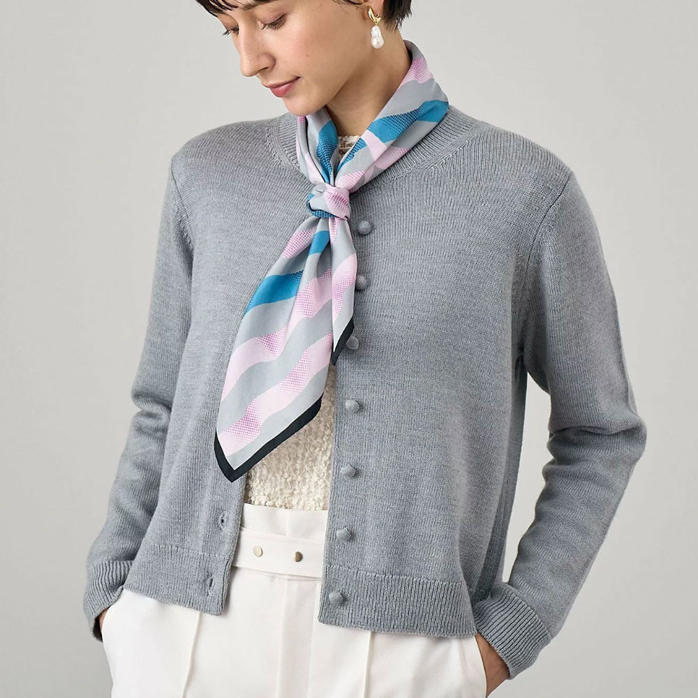 首元にスカーフを巻くだけで、一気に春に芽吹く花のような華やかさが加わります。